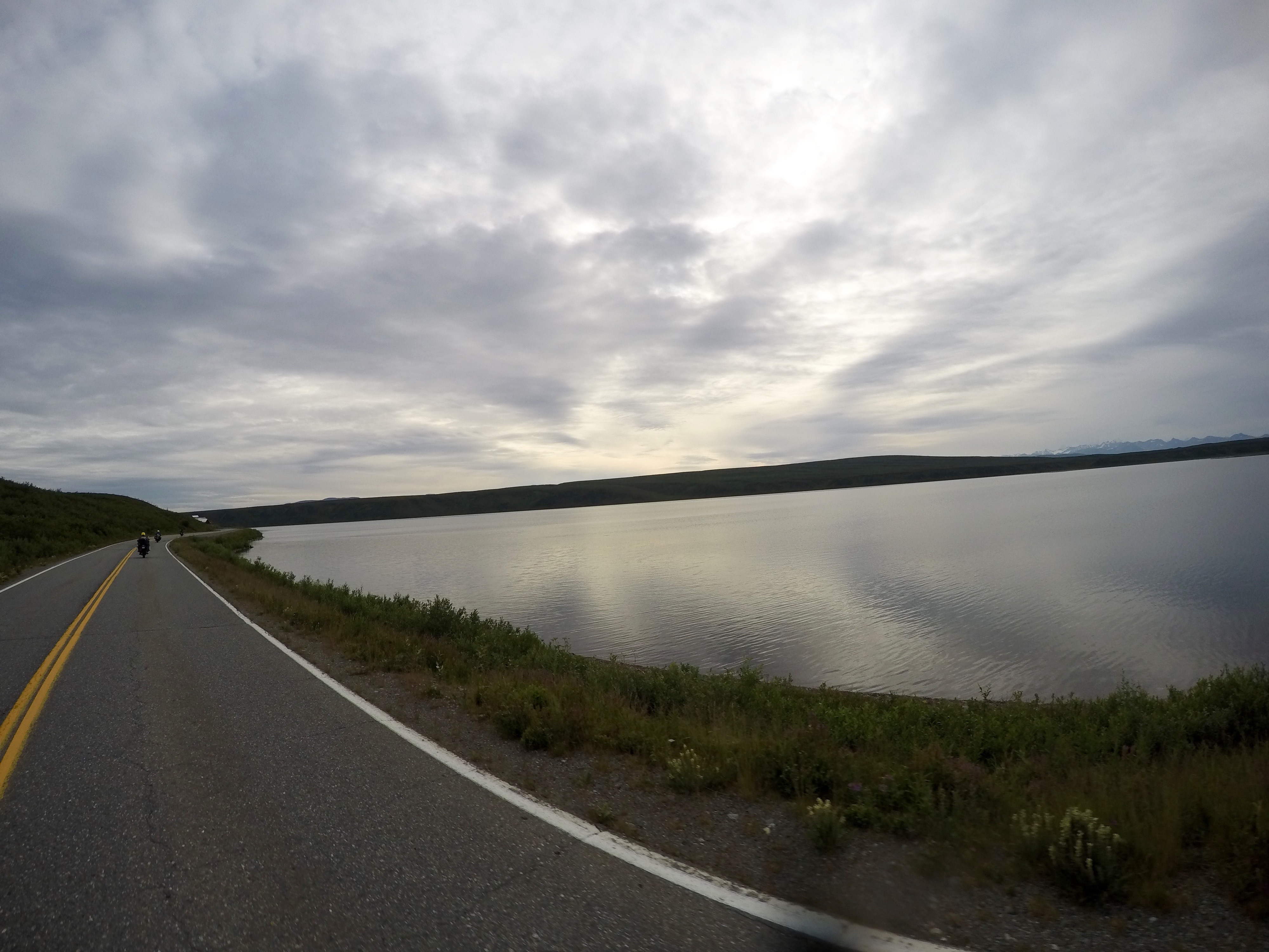 The eastern 20 mi of the Denali Highway are some of the best tarmac found in the state. 70 MPH sweepers, half mile sight lines, good to middling pavement, and gorgeous scenery make it my favorite bit of road so far. Unfortunately the camera was covered in smeared bug, so I can't quite share it with you.