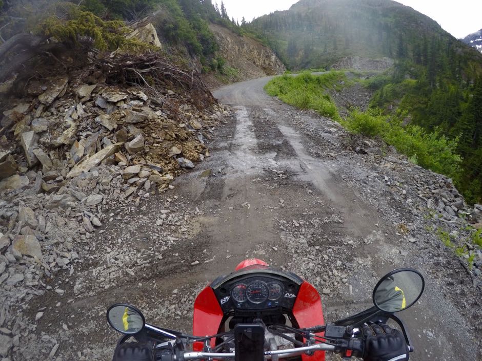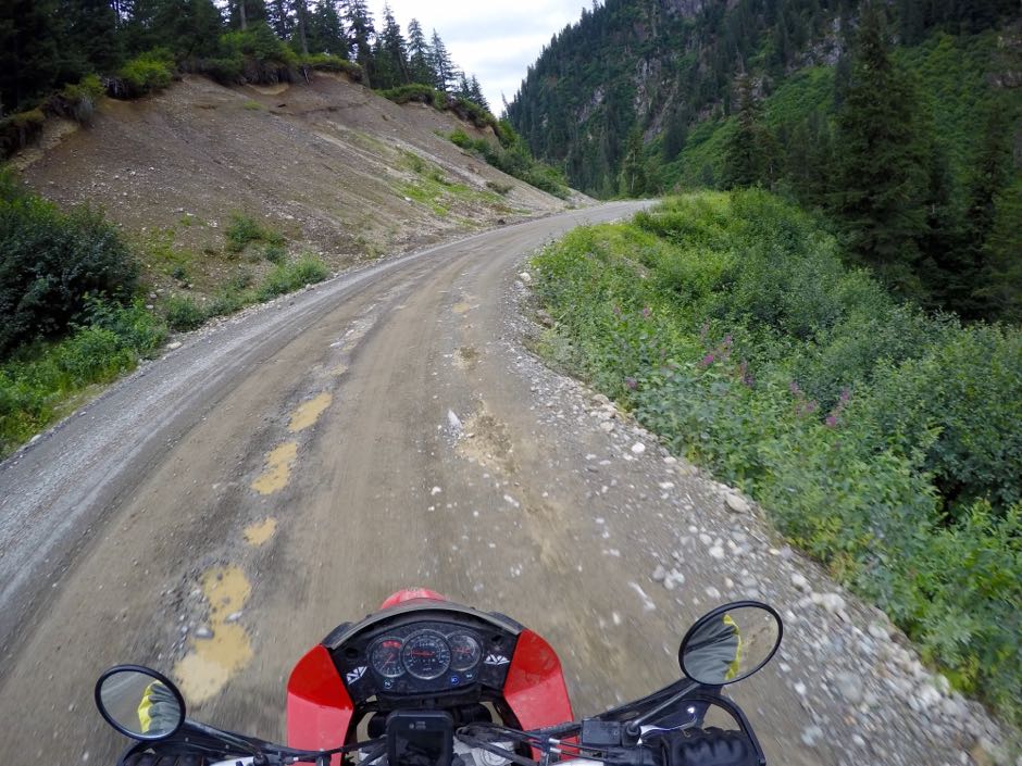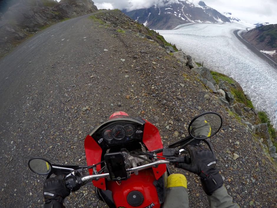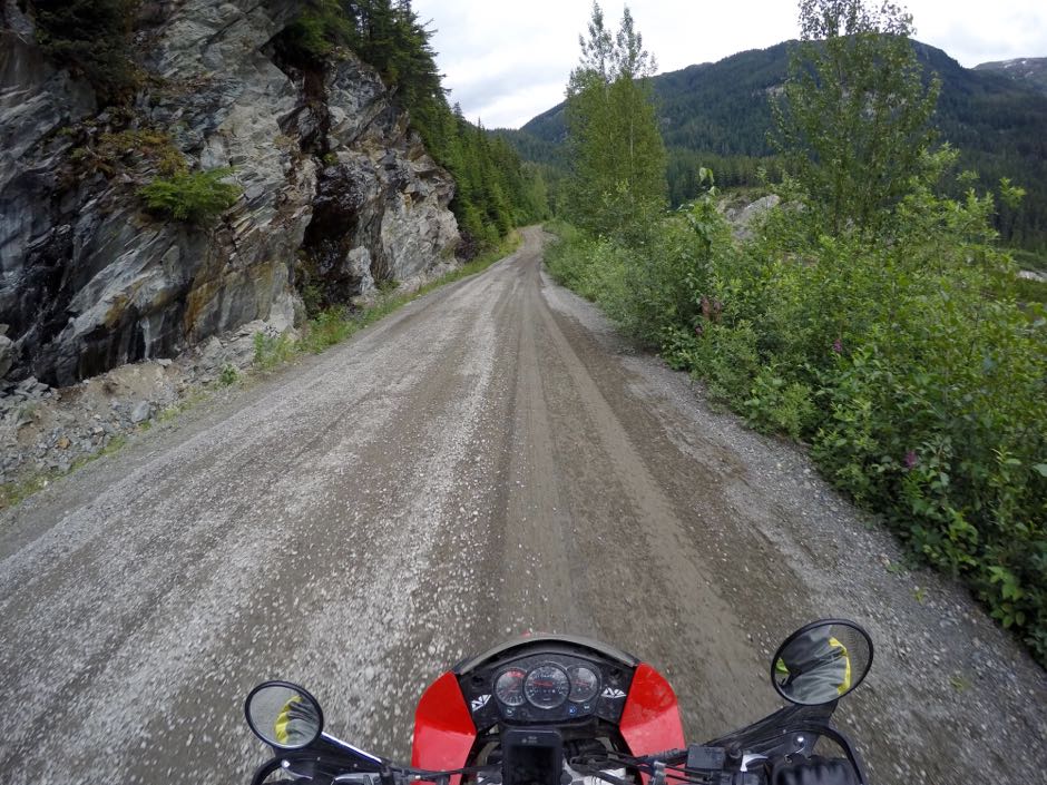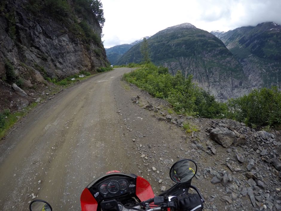 There's a 30 mile dirt road leading back up out of Hyder into Canada, up a glacial melt river to the glaciers above. The road is, well, it's a little tough on a bike, especially since I put road-oriented tires on in Whitehorse.